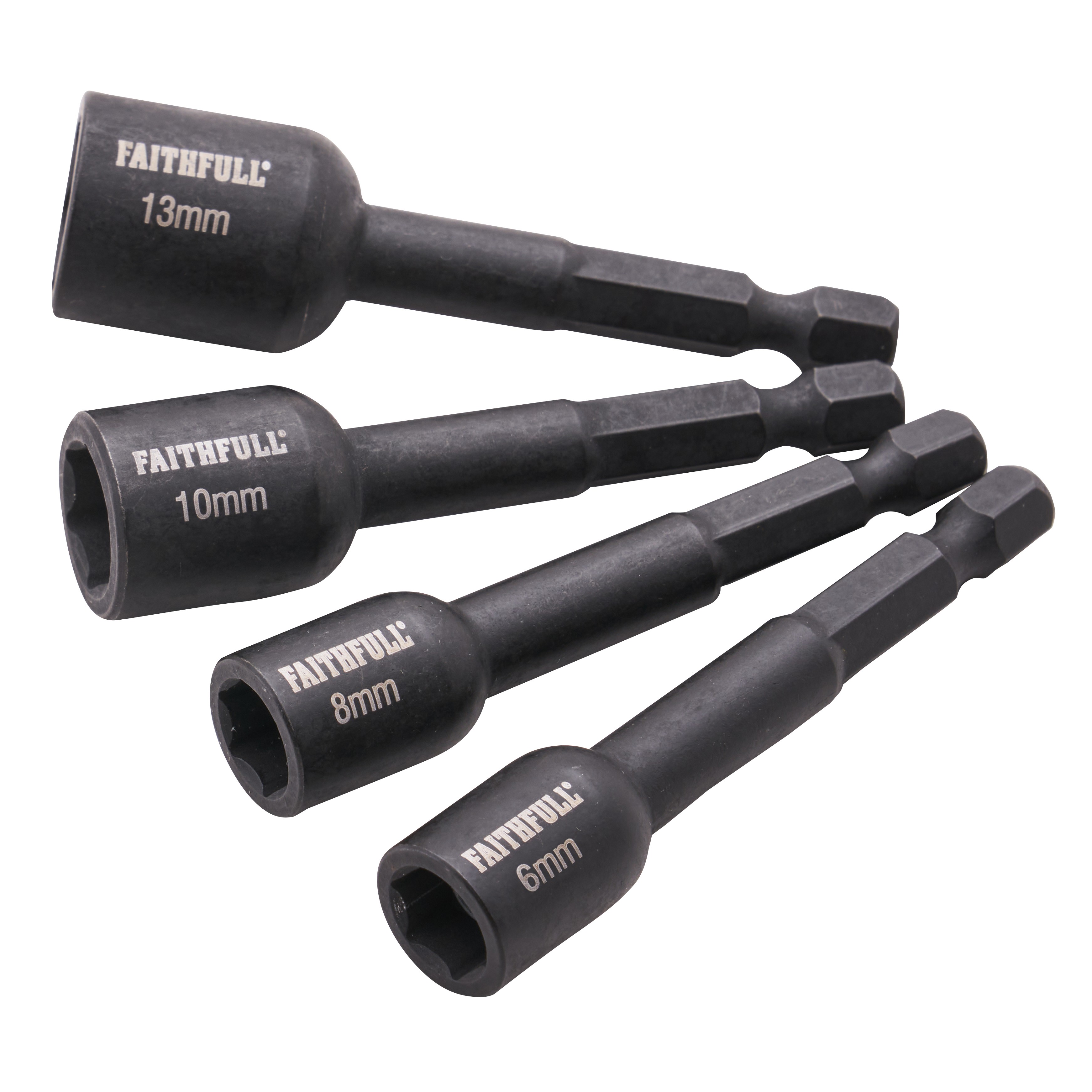 " The New & Exclusive XMS Impact Nut Driver Set, 4 Piece has 1/4"" shanks ideal for impact drivers. Faithfull have made this 6/8/10/13mm diameter' Set with Black phosphate surface finishing. This New & Exclusive line is a must for our GKO for Christmas promotion. For loosening or tightening nuts and bolts particularly where high torque and heavy duty performance is required. "