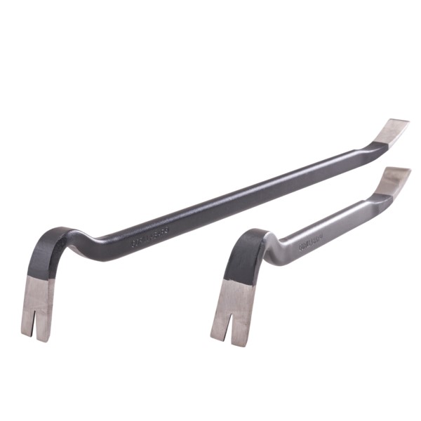 The Roughneck Gorilla Bar® has a low profile claw that fits further under the workpiece for increased prying power and the wider claw surface offers better control whilst resisting sinking into the support surface. Made from drop-forged alloy steel hardened and tempered, with polished tips, and oval shaped for better control and strength. This 2 Piece Gorilla Bar® Set contains the following: 1 x Gorilla Bar® 550mm (22in). 1 x Gorilla Bar® Junior 356mm (14in).